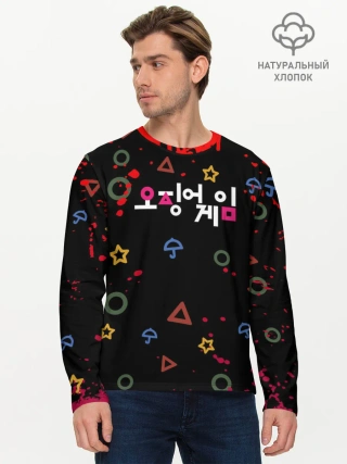 Мужской лонгслив базовый / Игра в кальмара: Паттерн фигурок.