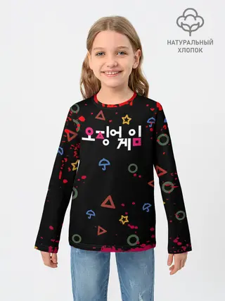 Детский лонгслив / Игра в кальмара: Паттерн фигурок.