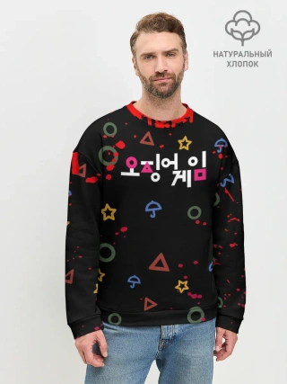Мужской свитшот базовый / Игра в кальмара: Паттерн фигурок.