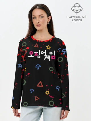 Лонгслив женский. Хлопок / Игра в кальмара: Паттерн фигурок.