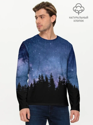 Мужской лонгслив базовый / НОЧНОЙ ЛЕС И ЗВЕЗДЫ