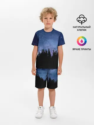 Детская пижама с шортами / НОЧНОЙ ЛЕС И ЗВЕЗДЫ