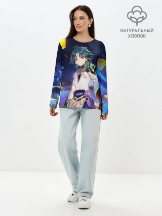 Лонгслив женский. Хлопок / Сяо, Genshin Impact