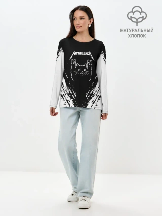 Лонгслив женский. Хлопок / Мяуталлика / Meowtallica.