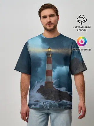 Мужская футболка оверсайз / НОЧНОЙ МАЯК