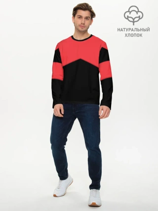 Мужской лонгслив базовый / ГЕОМЕТРИЯ МИНИМАЛИЗМ | КРАСНЫЕ ПОЛОСЫ