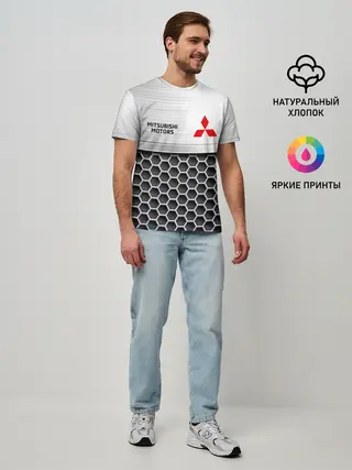 Мужская футболка оверсайз / Mitsubishi | Стальная решетка