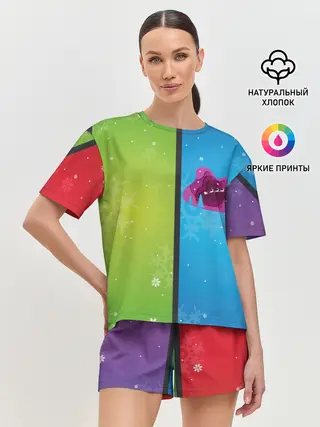 Женская футболка оверсайз / Цветное рождество Snowflake