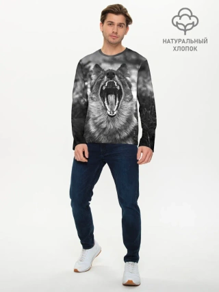 Мужской лонгслив базовый / Волчья пасть, зевает