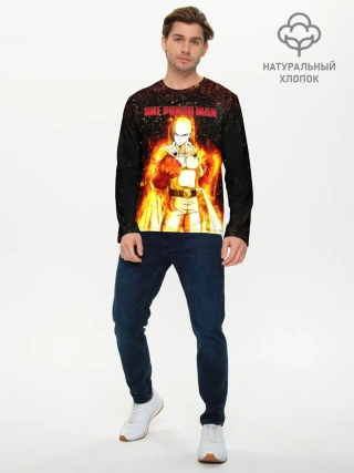 Мужской лонгслив базовый / Сайтама в огне | One Punch-Man