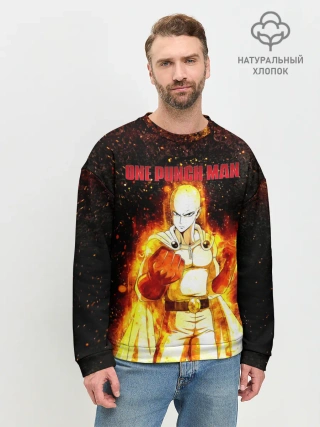 Мужской свитшот базовый / Сайтама в огне | One Punch-Man