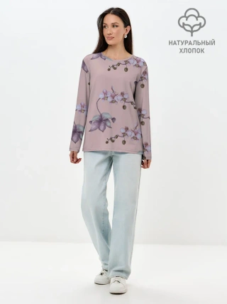 Лонгслив женский. Хлопок / Розовые орхидеи на розовом фоне