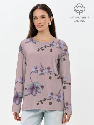 Лонгслив женский. Хлопок / Розовые орхидеи на розовом фоне
