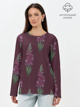 Лонгслив женский. Хлопок / Бардовые гладиолусы