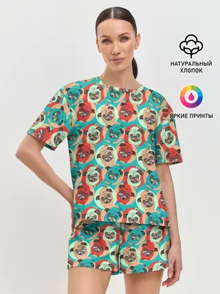 Женская пижама с шортами / Прикольные Мопсы