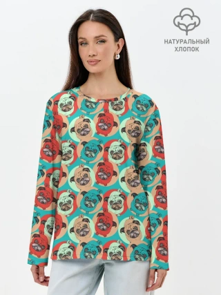 Лонгслив женский. Хлопок / Прикольные Мопсы