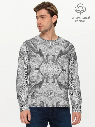 Мужской лонгслив базовый / Черно-белый абстрактный узор.