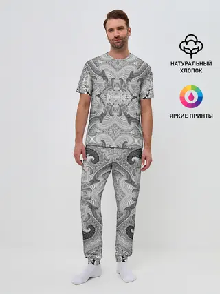 Мужская пижама с брюками / Черно-белый абстрактный узор.