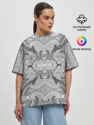 Женская футболка оверсайз / Черно-белый абстрактный узор.