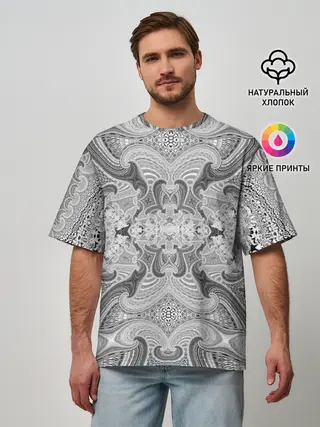 Мужская футболка оверсайз / Черно-белый абстрактный узор.