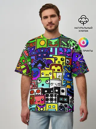 Мужская футболка оверсайз / GEOMETRY DASH ВСЕ СКИНЫ