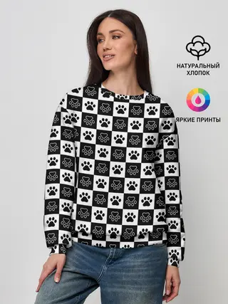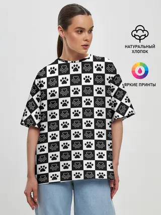 Женская футболка оверсайз / Следы на Шахматном Фоне