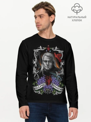 Мужской лонгслив базовый / ГЕРАЛЬТ КРАСОЧНЫЙ ПОСТЕР / ГЕРАЛЬ ИЗ РИВИИ