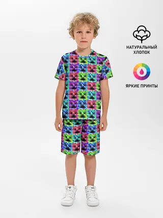 Детская пижама с шортами / МАЙНКРАФТ / MINECRAFT ЦВЕТНЫЕ КРИПЕРЫ