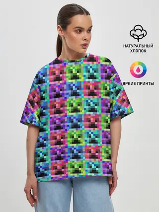 Женская футболка оверсайз / МАЙНКРАФТ / MINECRAFT ЦВЕТНЫЕ КРИПЕРЫ
