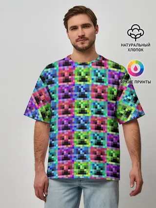 Мужская футболка оверсайз / МАЙНКРАФТ / MINECRAFT ЦВЕТНЫЕ КРИПЕРЫ