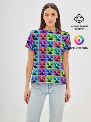 Женская базовая футболка / МАЙНКРАФТ / MINECRAFT ЦВЕТНЫЕ КРИПЕРЫ