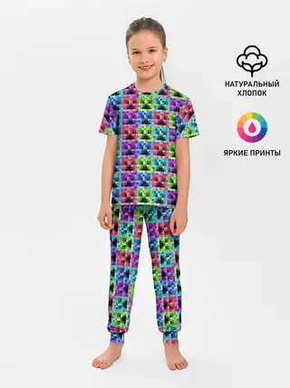 Детская пижама с брюками / МАЙНКРАФТ / MINECRAFT ЦВЕТНЫЕ КРИПЕРЫ