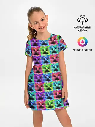 Детское платье / МАЙНКРАФТ / MINECRAFT ЦВЕТНЫЕ КРИПЕРЫ