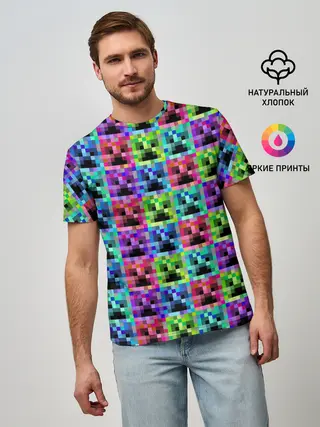 Мужская базовая футболка / МАЙНКРАФТ / MINECRAFT ЦВЕТНЫЕ КРИПЕРЫ