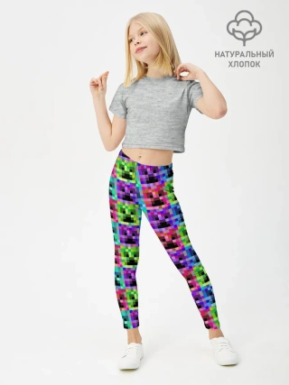 Леггинсы для девочки / МАЙНКРАФТ / MINECRAFT ЦВЕТНЫЕ КРИПЕРЫ