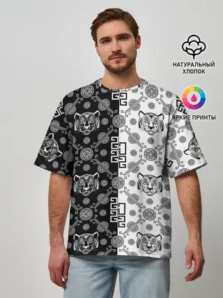 Мужская футболка оверсайз / Тигры в китайском стиле