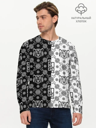 Мужской лонгслив базовый / Тигры в китайском стиле