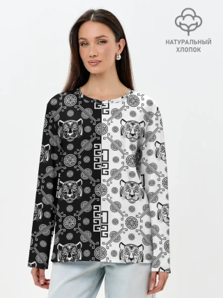 Лонгслив женский. Хлопок / Тигры в китайском стиле
