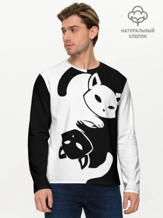 Мужской лонгслив базовый / Черный и белый кот кувыркаются.