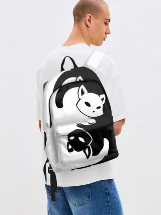 Рюкзак детский / Черный и белый кот кувыркаются.