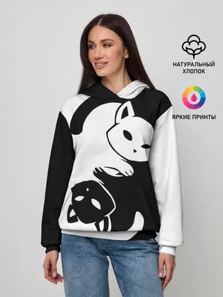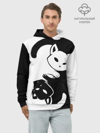 Худи мужской база хлопок / Черный и белый кот кувыркаются.