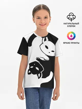 Детская базовая футболка / Черный и белый кот кувыркаются.
