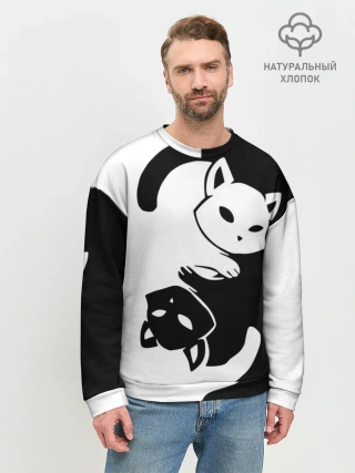 Мужской свитшот базовый / Черный и белый кот кувыркаются.