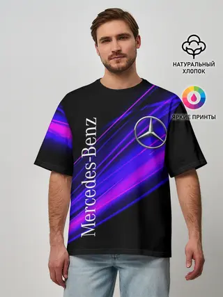 Мужская футболка оверсайз / MERCEDES-BENZ / МЕРСЕДЕС-БЕНЗ / ПУРПУРНЫЙ