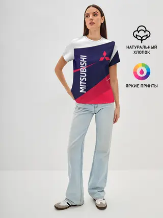 Женская футболка оверсайз / MITSUBISHI ТРИКОЛОР