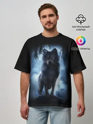 Мужская футболка оверсайз / ВОЛК БРОДЯГА