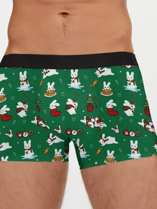 Мужские трусы боксеры / Новогодний паттерн с зайчиками