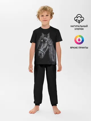 Мужская футболка оверсайз / Лошадь на черном фоне
