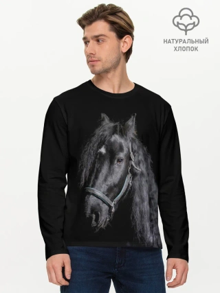 Мужской лонгслив базовый / Лошадь на черном фоне
