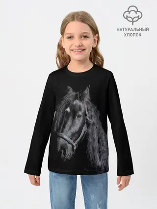 Детский лонгслив / Лошадь на черном фоне